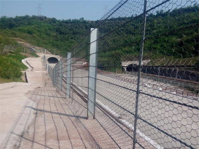 你知道钢性防护网使用原理吗? 钢性被动防护网的系统常规高度一般为1.8M或2.5M,刚性防护网的立柱间距可适当增大(如3m一4m),当落石尺寸小能量大时,上下钢丝绳可能被滚石挤压变形后穿过,因此增设间距保持板材,增设薄钢板相对于减小型钢立柱的间距而言,费用大幅降低,钢丝绳间距保持钢板设置双绞六变形钢丝网设置钢丝格栅网一方面是为了拦截小粒径落石,同时还可增加系统的整体性能.目前国内常用的钢丝格栅网有单绞及双绞两种编织方式,当单根钢丝破断时,相比单绞方式,双绞格栅网不容易发生连续破坏,因此新型刚性防护网采用双绞六边形钢丝网,端柱设置斜支撑为防止端柱在受到拉力时沿着钢丝绳的方向发生倾覆,端部钢柱带有斜撑.斜撑可采用角钢或者槽钢